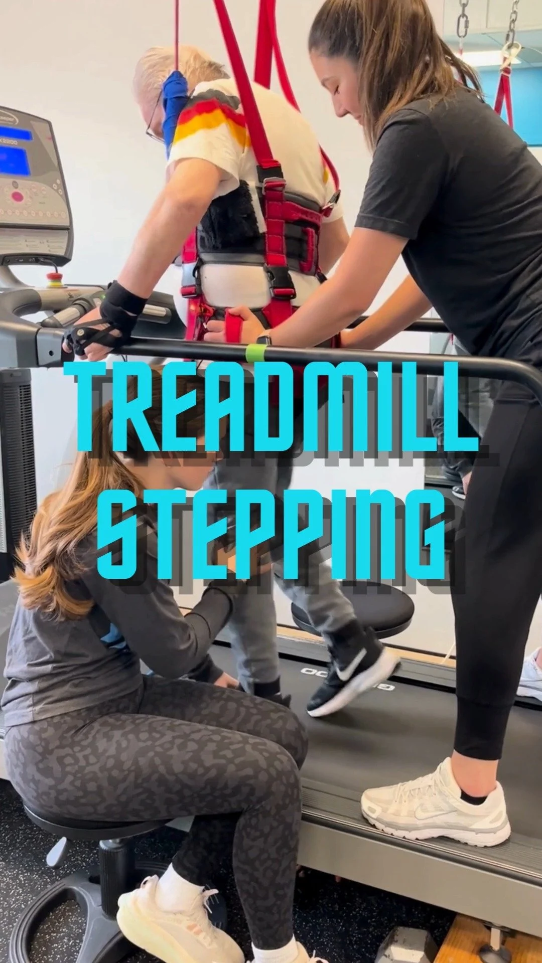 Gait Training allows individuals living with paralysis to repetitively practice standing and stepping using body weight support. In a GT session, the participant is suspended in a harness over a treadmill while specially trained staff move his or her legs and body to simulate walking. As the person gains function, improvements in sitting, standing, reaching, grasping or walking occur.